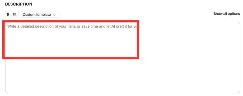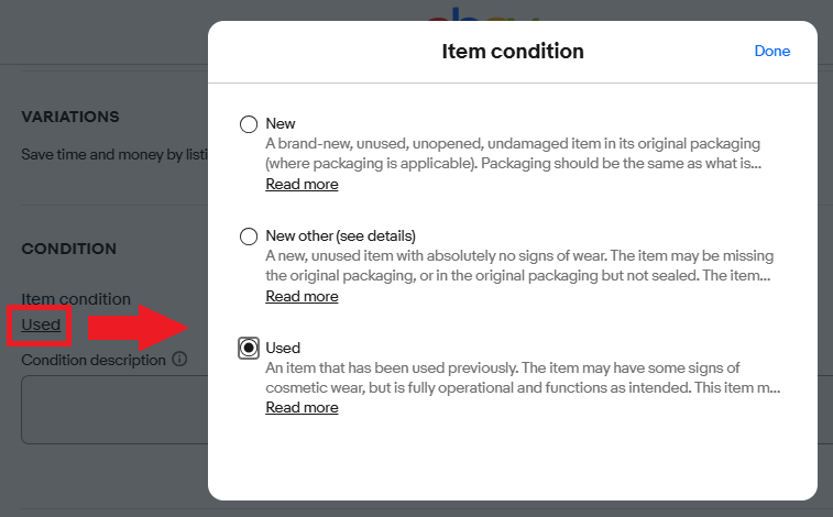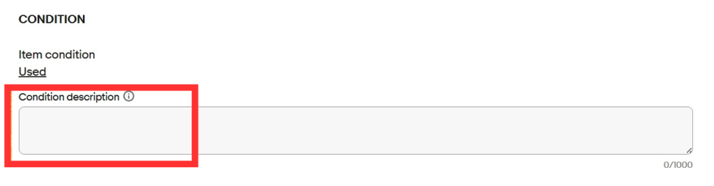「Condition description」には、商品のより詳しい状態を入力してください。