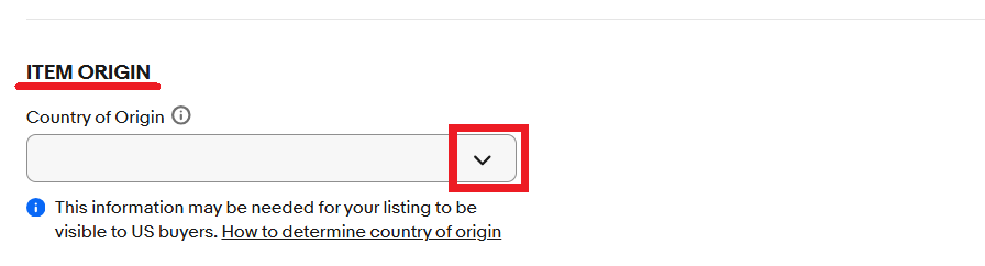 「ITEM ORIGIN」は、商品の原産国(その商品が製造された国)を選択する箇所です。