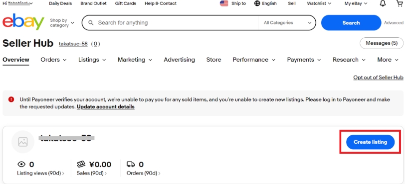 Seller Hubを導入がまだの場合、「eBayアカウントの作成手順や必要なものを解説!スマホでの登録方法も紹介」で設定方法など解説しているので、参考にしてください。