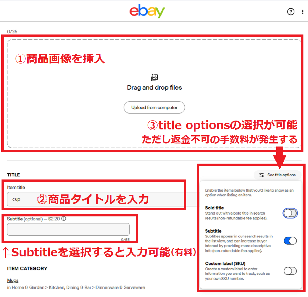 eBayで商品を出品する際は、タイトルを工夫しましょう。