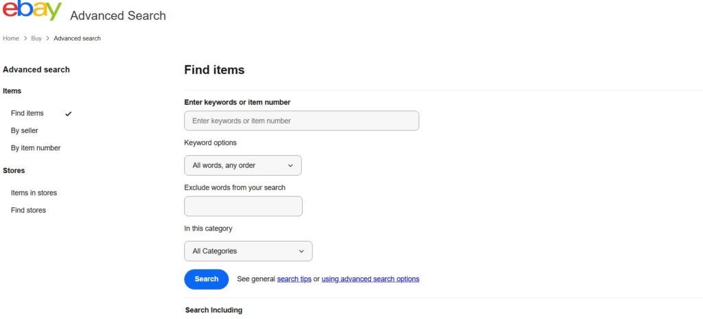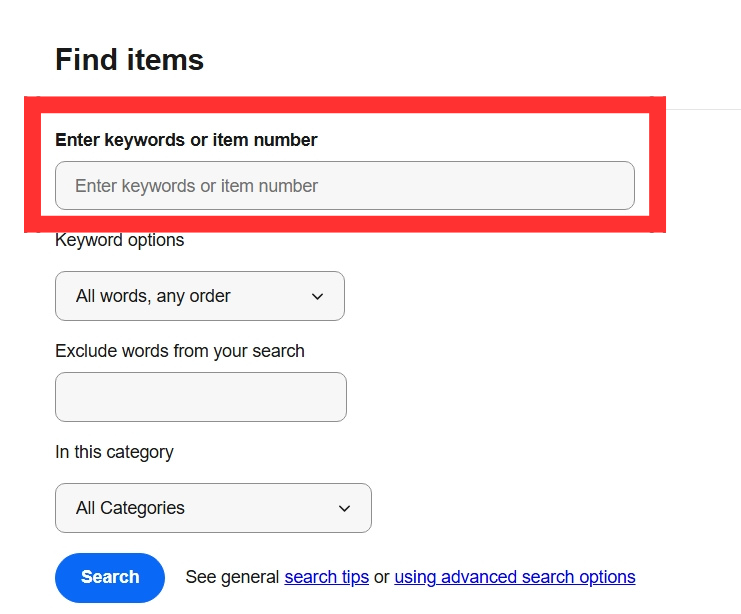 上記で解説したeBayで必須の設定方法を踏まえた上で、Advanced Searchの使い方を見ていきましょう。