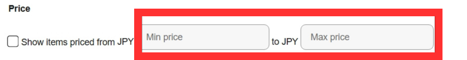 商品の出品価格で検索。 評価稼ぎでの低価格(100円台)を除外するために、最低価格の設定が重要。 |